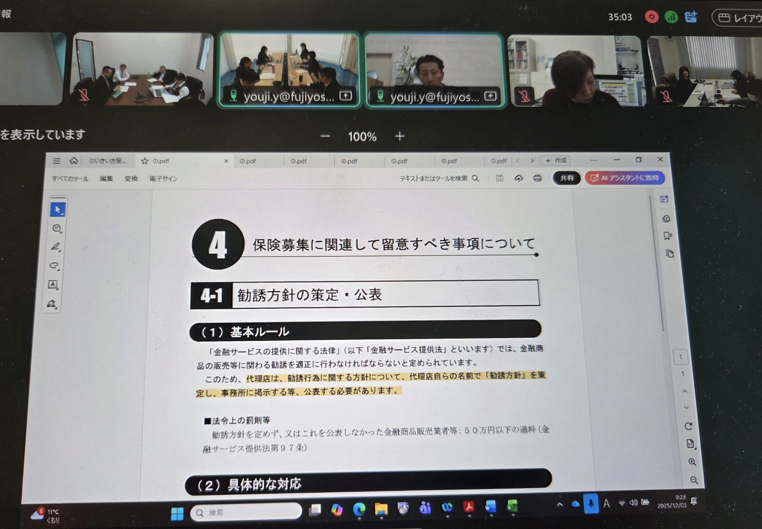 令和7年12月3日9時15分~10時45分頃まで、WEBにて本社・トライ店・郡上事務センターが集まり、WEBミーティングを行いました。